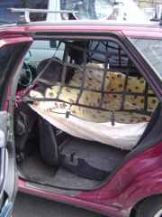 事故防止用のネットとシートで、コリーは頭だけ外へ出せます